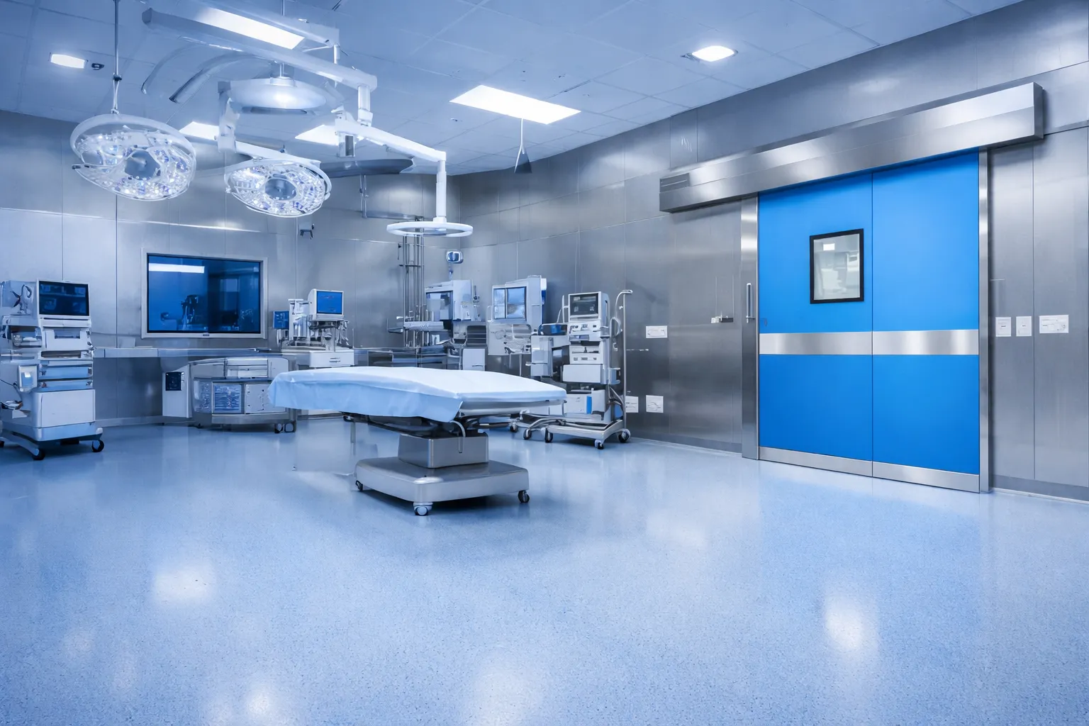 Pintu Sandwich Panel Sliding Hermetic adalah pintu otomatis kedap udara yang dirancang khusus untuk ruang operasi, ICU, laboratorium, dan cleanroom. Sistem hermetic memastikan pintu menutup dengan rapat sehingga mencegah pertukaran udara dan kontaminasi antar ruang.